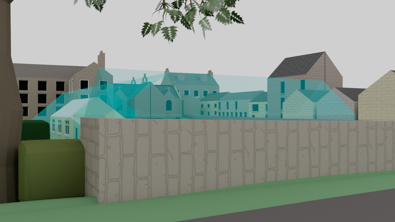 Since visualisations were not included with the application, we have commissioned an independent 3D modeller to create some. This demonstrates how much of the views from the Town Walls into town are blocked, from various angles.
